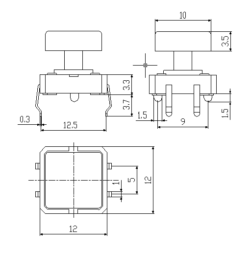 |  | | 型號規(guī)格:TS1273G1系列 | 中文命名:12*12加蘭蓋輕觸 |