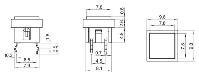 |  | | 型號規(guī)格:TSD6801GB0系列 | 中文命名:6x6(不)帶燈帶殼型輕觸開關 |