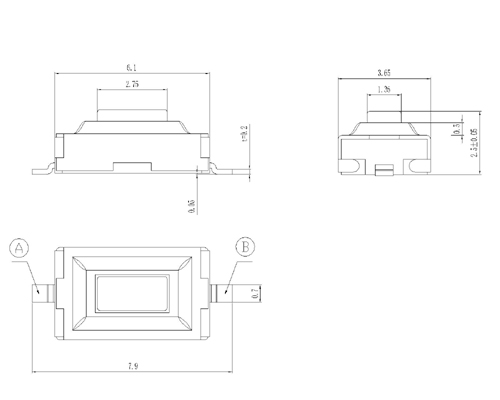 |  | | 型號規(guī)格:TSL3625系列 | 中文命名:3*6*2.5拉伸蓋貼片輕觸 |