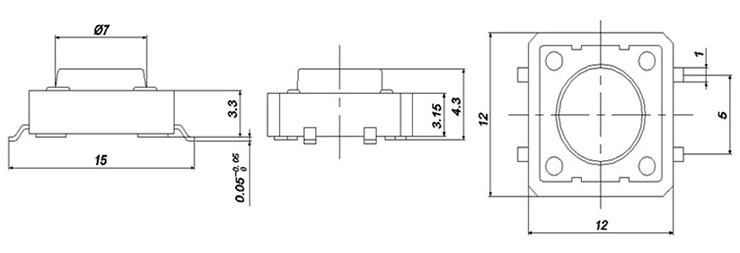 |  | | 型號(hào)規(guī)格:TSTP1243系列 | 中文命名:12*12*4.3貼片無(wú)定位輕觸 |