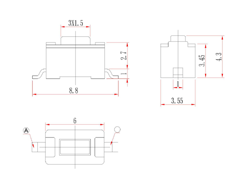 |  |  | 型號(hào)規(guī)格:TSTP36H系列 | 中文命名:3*6貼片無(wú)定位輕觸開(kāi)關(guān) |