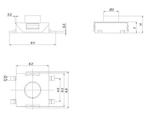 |  | | 型號規(guī)格:TSTPHW系列 | 中文命名:花蓋貼片平座輕觸開關(guān) |