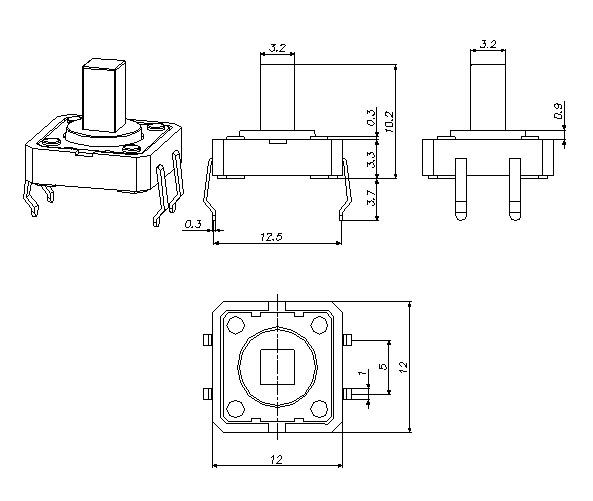 |  | | 型號(hào)規(guī)格:TSZ12102系列 | 中文命名:12*12長(zhǎng)方按鈕插腳型輕觸 |