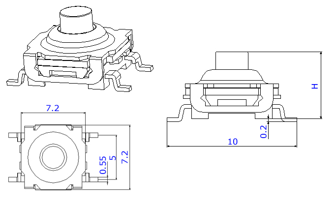 |  | | 型號規(guī)格:WSTP050系列 | 中文命名:黑防水貼片輕觸 |