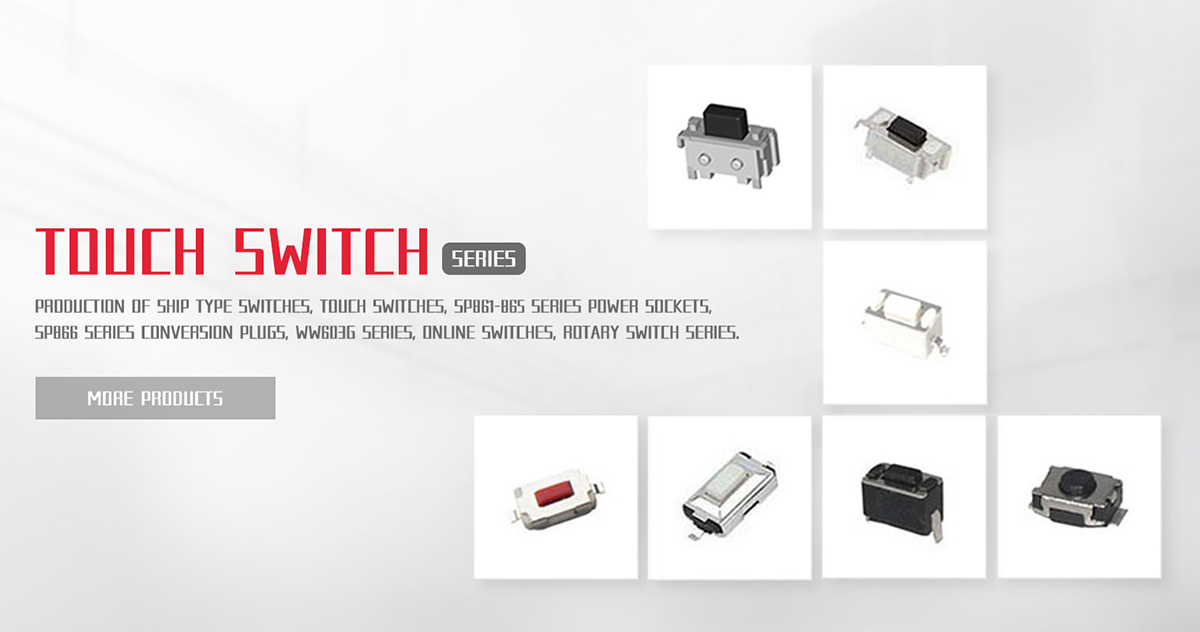 The company specializes in the production of ship switches, touch switches, SP861-865 series power sockets, SP866 series conversion plugs, WW11 series fretting switches, WW01-03, 09 series button switches DS, WW series indicator switches, WW603G series & nbsp; online switches & nbsp;, rotary switches series, TCD series thermostats and other electronic equipment.