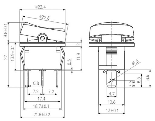 |  | | 型號規(guī)格:KCD5-3PY系列 | 中文命名:黑色圓按鈕船形開關(guān) |