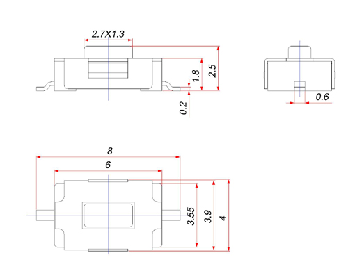 |  | | 型號(hào)規(guī)格:TS3625B系列 | 中文命名:3*6*2.5不拉伸平蓋輕觸 |