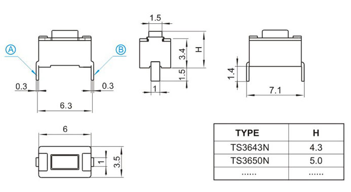 |  | | 型號規(guī)格:TS36HN系列 | 中文命名:輕觸開關系列 |