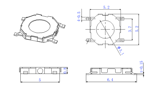 |  | | 型號規(guī)格:TS4408系列 | 中文命名:4*4帶蓋防水型輕觸開關(guān) |