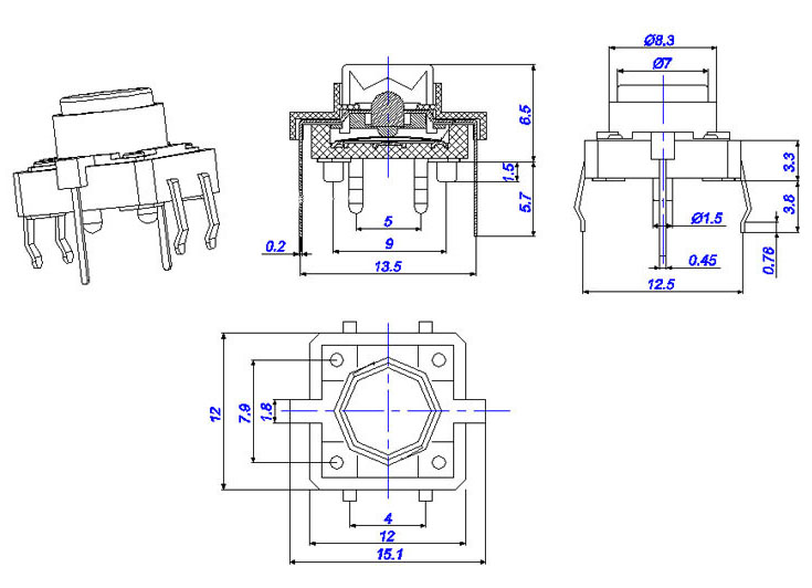 |  | | 型號(hào)規(guī)格:TSD1265系列 | 中文命名:12*12帶燈型按鈕 |