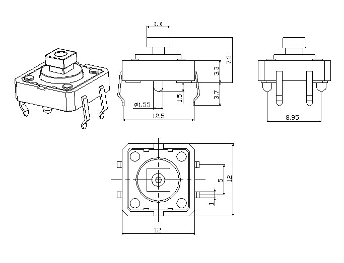 |  | | 型號(hào)規(guī)格:TSF1273T系列 | 中文命名:12*12*7.3黃色方帽帶定位輕觸 |
