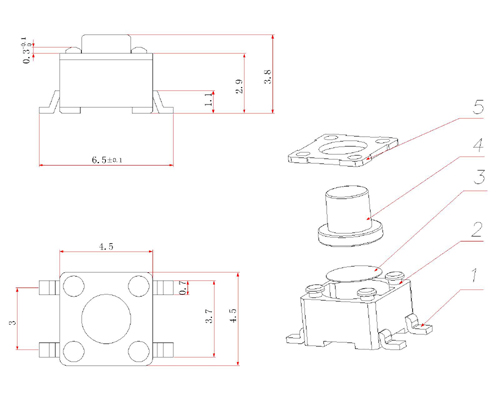 |  | | 型號(hào)規(guī)格:TSTP45H系列 | 中文命名:4.5*4.5貼片型輕觸開(kāi)關(guān) |