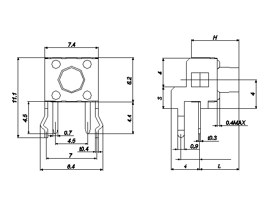 |  | | 型號(hào)規(guī)格:TSZJ66HX1系列 | 中文命名:6X6支架輕觸開關(guān) |
