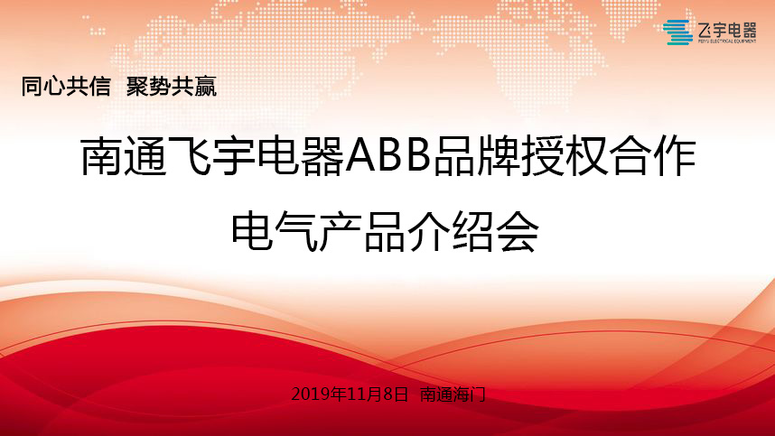 此次ABB品牌授權(quán)合作電氣產(chǎn)品介紹會(huì)不僅是我們飛宇電器經(jīng)過(guò)十年跨越發(fā)展的首次亮相,也是對(duì)我們公司產(chǎn)品的首次檢閱。飛宇電器將牢牢抓住此次與ABB合作生產(chǎn)的機(jī)遇,緊跟時(shí)代,闊步向前,全面提升品牌價(jià)值。