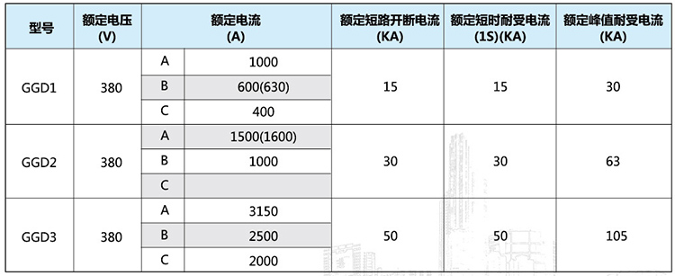 GGD型低壓成套開關(guān)設(shè)備按用途可分為受電柜、母線聯(lián)絡(luò)柜、饋電柜、電動機(jī)控制柜、無功功率^嘗柜和照明配電柜等。該結(jié)構(gòu)具有分?jǐn)嗄芰Ω?、動熱穩(wěn)定性好、設(shè)計靈活、組合方便、系列性實用性強(qiáng)、結(jié)構(gòu)新穎、防護(hù)等級高等特點。